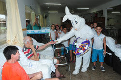 Os alunos do Colégio Guerreiro, de Praia Grande, resolveram comemorar a Páscoa de uma maneira diferente. Ao invés de trocarem chocolates, crianças decidiram doar seus bombons aos idosos do Lar São Francisco de Assis, do Bairro Mirim. Até um coelhinho da páscoa participou da entrega, que aconteceu na quarta-feira (27).
