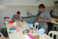 Alguns moldes, por exemplo, podem ser feitos a partir de caixas de leite longa vida. O objetivo da oficina é reaproveitar tecidos, aviamentos, botões e linhas. A expectativa é que cada participante deixe o local com um objeto temático personalizado.